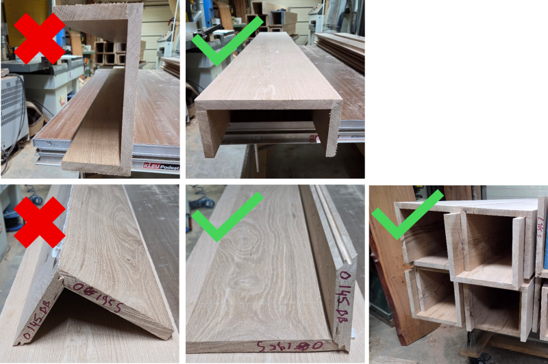 - De eerste vraag is of de koof in zijn geheel geprefabriceerd kan worden, of dat een zijde los moet blijven om ter plekke verlijmd te worden.